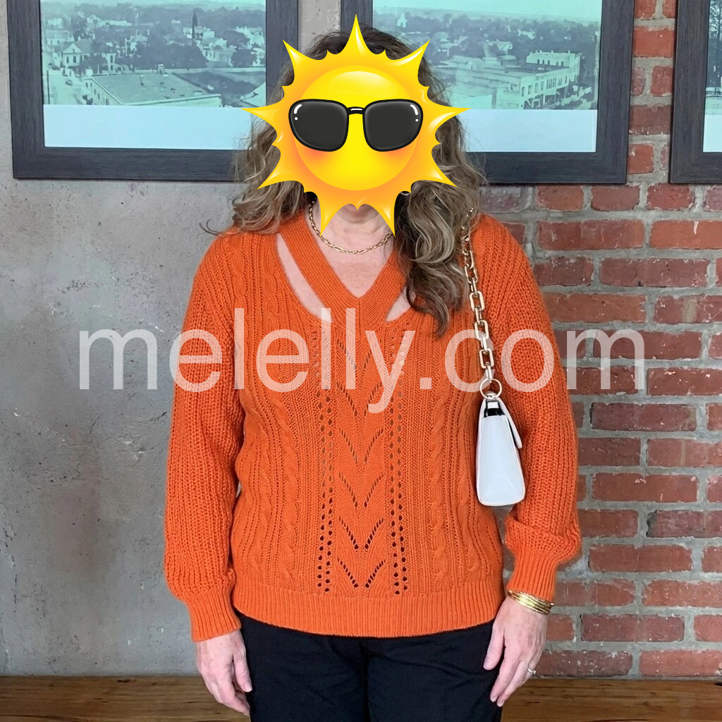 Orange Plain Long Sleeve Sweater