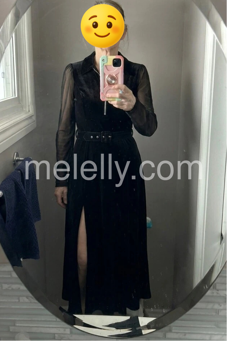 Black Velvet Zip Front Long Sleeve Maxi Dress