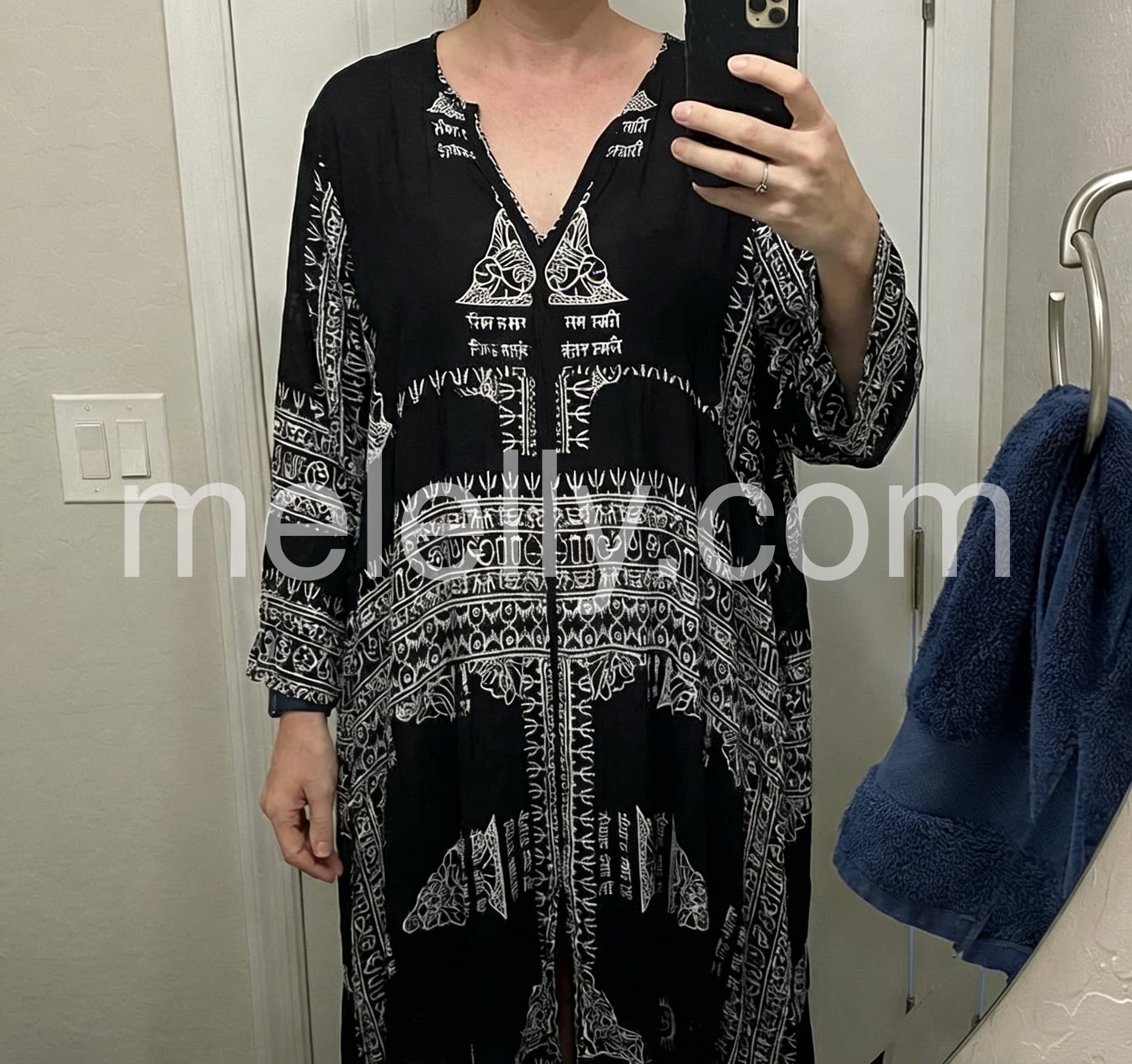 I’m obsessed with this black and white printed dress! The detailed ethnic patterns add so much character, and the oversized silhouette is both cozy and stylish. The fabric is soft and breathable, ideal for warm weather. I’ve worn it to brunch and a beach picnic, and it always gets compliments. It’s the ultimate piece for embracing a laid-back, boho vibe!
